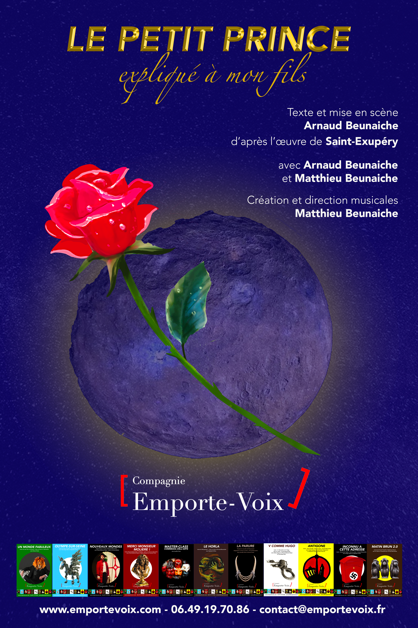 Adapté du célèbre roman initiatique, faussement simple et naïf, notre spectacle retient l’essentiel de la magie et de la poésie du chef d’œuvre de Saint-Exupéry pour expliquer aux plus jeunes le sens de la vie, de l’amour, de l’amitié et de la mort grâce à une mise en scène dynamique, musicale, haute en couleurs.
