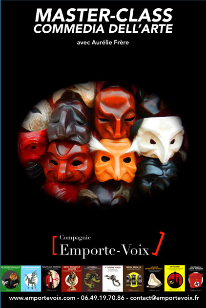 1ère heure : présentation des masques, des personnages, de la commedia dell'arte ; travail corporel : incarner les rôles ; travail des émotions : comment faire vivre le masque ; comique de répétition, de gestes, de situation